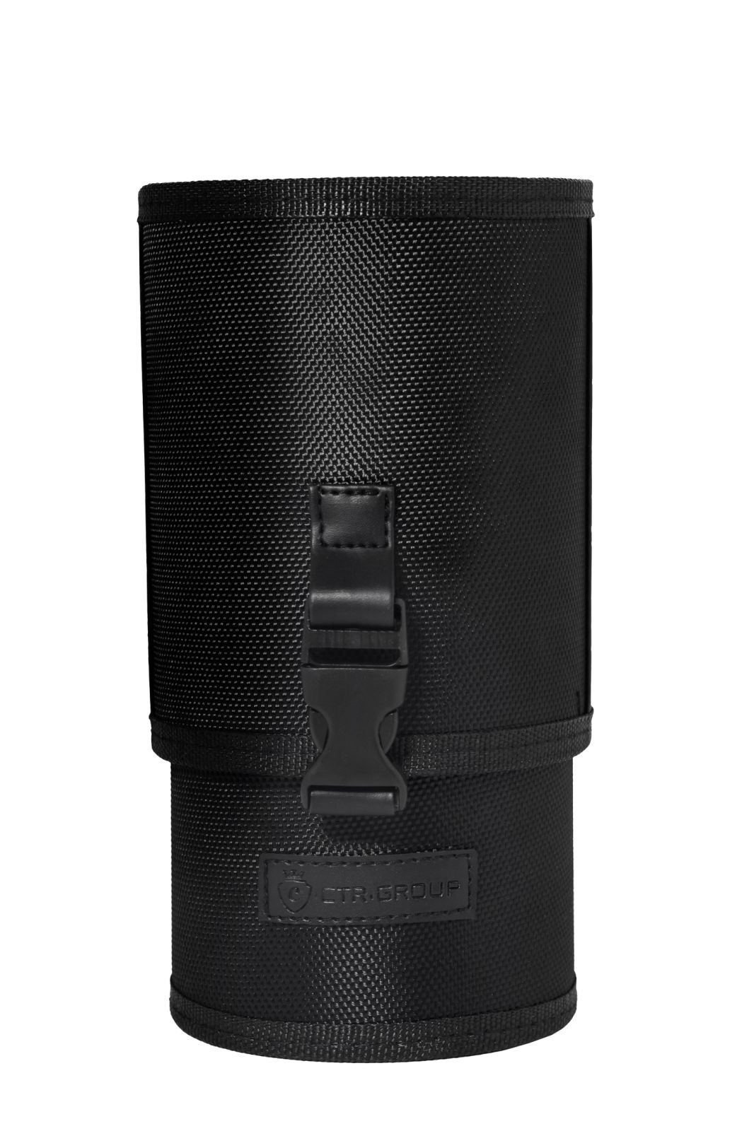 Stilingas ir praktiškas sprendimas tavo grožio įrankiams – juodas cilindro formos dėklas šepetėliams iš CTR Group„Dark Sharm“ kolekcijos. Puikiai tinka tiek kasdieniam laikymui, tiek saugiam transportavimui į fotosesijas, mokymus ar pas klientus.