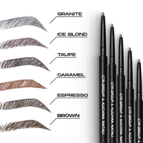 Atrask subtilų antakių paryškinimą su CTR x Kuchma Natali kolekcijos pudriniu pieštuku. Tai itin tikslus, automatinis pieštukas su pudrine tekstūra, kuris leidžia natūraliai užpildyti tarpus ir imituoti antakių plaukelius, nepersūdant su pigmentu.