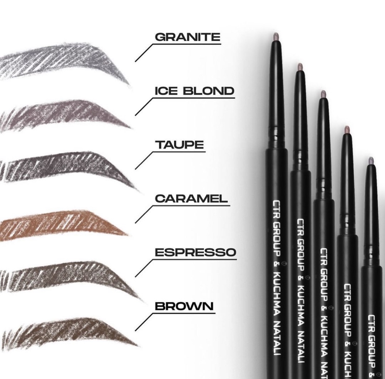 Atrask subtilų antakių paryškinimą su CTR x Kuchma Natali kolekcijos pudriniu pieštuku. Tai itin tikslus, automatinis pieštukas su pudrine tekstūra, kuris leidžia natūraliai užpildyti tarpus ir imituoti antakių plaukelius, nepersūdant su pigmentu.