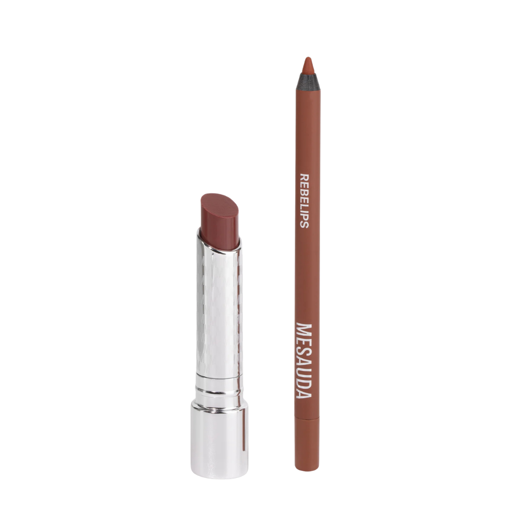 Mesauda FUDGY FLIRT – THE ULTIMATE LIP COMBO, matinis lūpų pieštukas ir putlinantis tonuotas lūpų balzamas