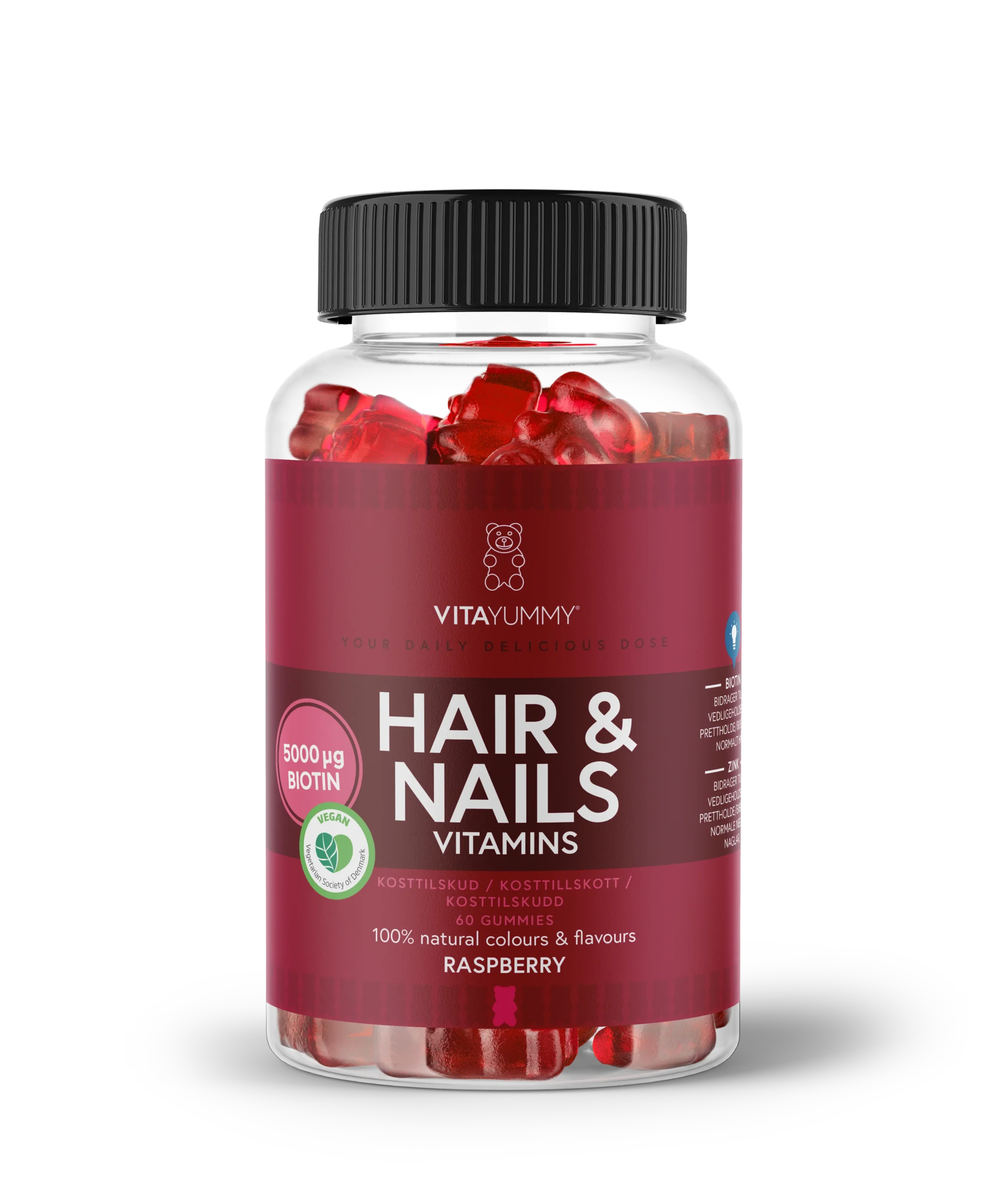 VitaYummy aviečių skonio multivitaminai su biotinu plaukams ir nagams, maisto papildas, 60 vnt/180 g